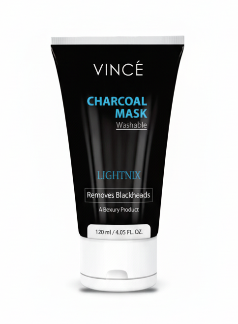 Vince Charcoal Mask 120ml purifies pores, removes blackheads, and detoxifies the skin for a smooth, oil-free, and glowing complexion.