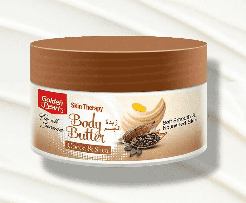 Golden Pearl Skin Therapy Cocoa & Shea Body Butter deeply nourishes, moisturizes, and softens dry skin. Enriched with natural cocoa and shea butters for soft, smooth, and radiant skin. Available now at Gardezi Mart.