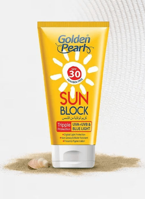 Protect your skin from the harmful effects of the sun with Golden Pearl Sun Block SPF 30, specially formulated for daily use. This broad-spectrum sunscreen shields your skin from UVA and UVB rays, preventing sunburn, premature aging, and dark spots while maintaining healthy, smooth skin.