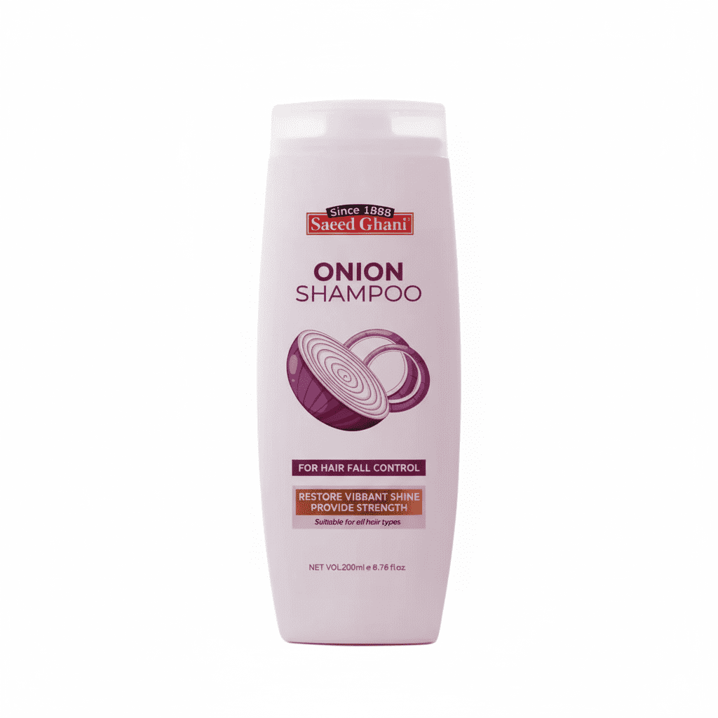 Revitalize your hair with Saeed Ghani Onion Shampoo (200ml), available at Gardezi Mart. Infused with the natural goodness of onion extract, this powerful herbal shampoo helps reduce hair fall, strengthen roots, and promote faster, healthier hair growth.