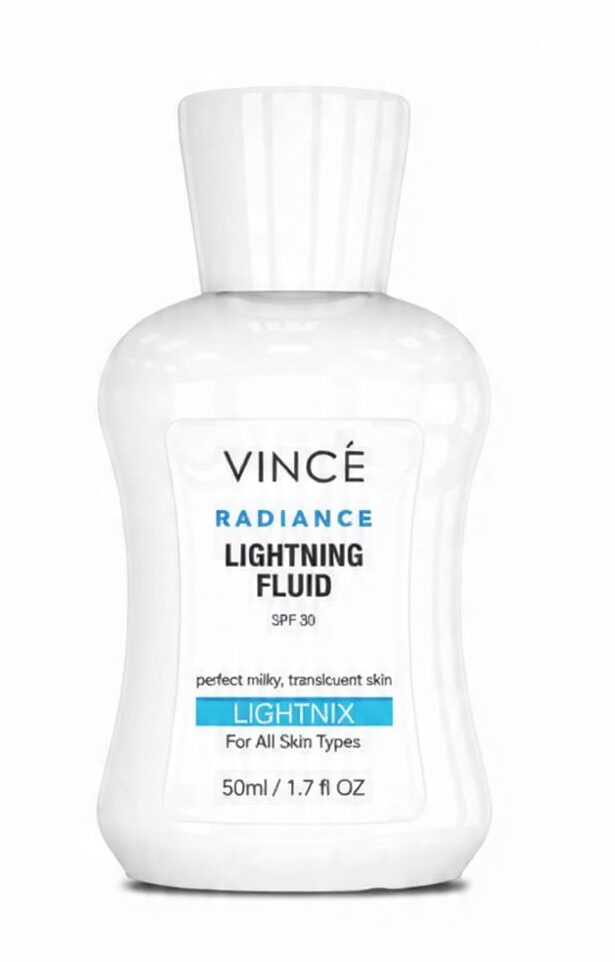 Vince Radiance Lightening Fluid 50ml brightens, hydrates, and evens out skin tone for a smooth, glowing complexion. Suitable for all skin types.