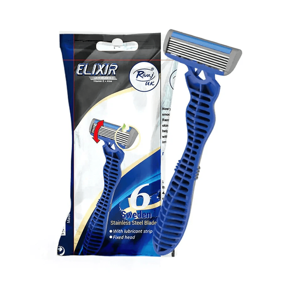 Experience the ultimate shaving performance with the Rivaj Men Elixir Razor (150-06) – equipped with 6 ultra-sharp blades for a close, smooth, and irritation-free shave. Available now at Gardezi Mart, this premium razor is designed for men who value precision and comfort.