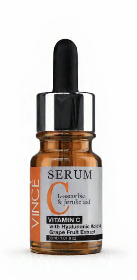 Vince Vitamin C Serum 30ml brightens, hydrates, and smooths skin while reducing dark spots and signs of aging. Available at Gardezi Mart for glowing, healthy skin.